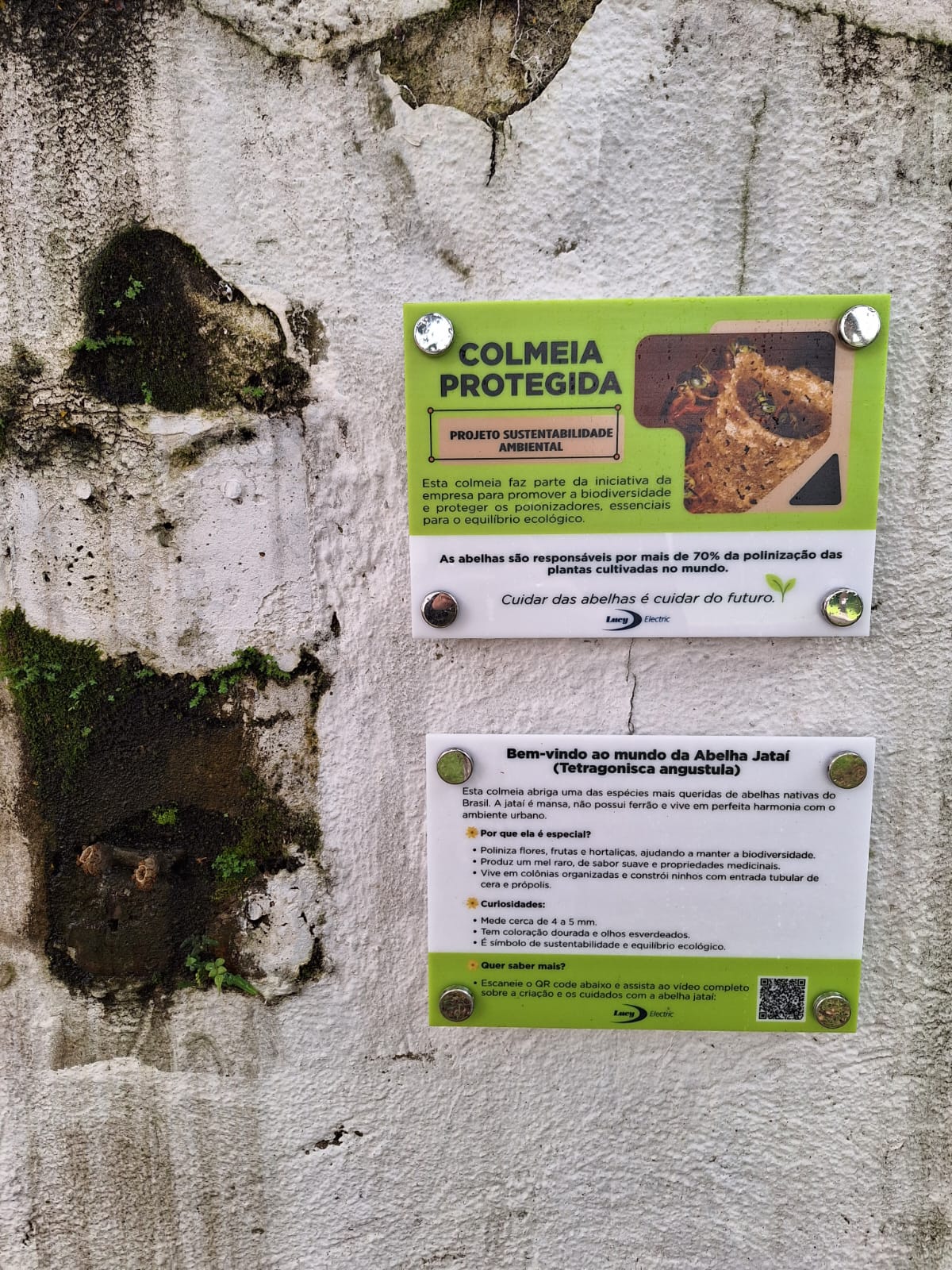 With this in mind, the team made the decision to protect the hive rather than remove it. To help raise awareness, informational signs have been installed nearby, explaining the importance of the Jataí bee and the role it plays in the local environment.